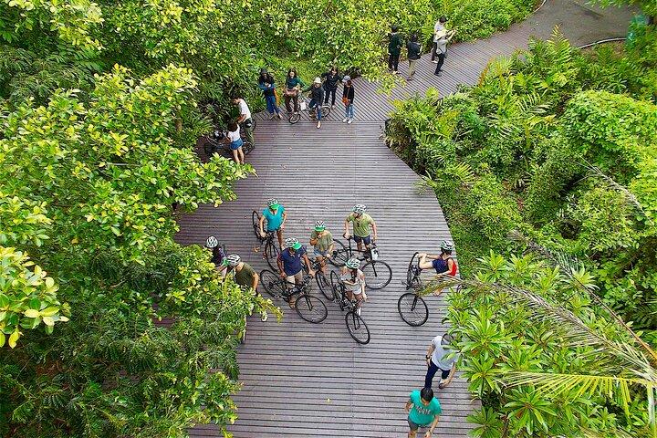 Feel the excitement as you ride along raised paths above the thick mangroves.